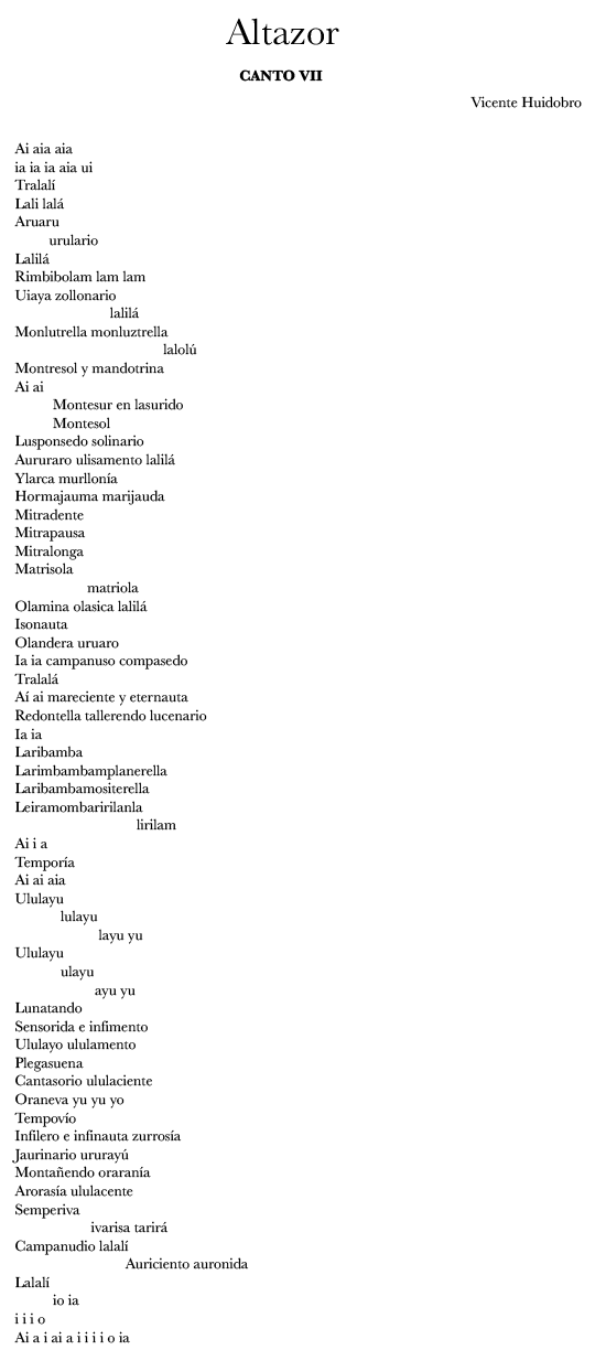 Para el presente ciclo les pedimos a siete actrices y actores que interpretaran libremente el «Canto VII» del poema Altazor, de Vicente Huidobro.