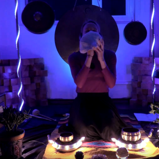 My sonic rituals are most often presented in the context of sound art and performance, although my primary practice is energetic channeling. I develop rituals that use electronic frequencies, mantra, crystals, and custom-made, electroacoustic instruments to create sacred space and immersive environments for transformation. Since these are rituals, they are hyper site-specific as each performance is tailored not only for the location and cultural context but are often intended only to be performed on one specific date and celestial configuration. I use sounds that correspond to the electromagnetic frequencies generated by our bodies, the earth and the gravitational fields of other celestial bodies in our galaxy. These sounds often come from traditional sacred technologies like singing bowls or conch horns. When necessary for the format of the ritual, I also design and build custom, electro-acoustic, sacred instruments. In this way, I approach technology in the broadest sense of the word and earnestly investigate any vehicle to connect to the divine.