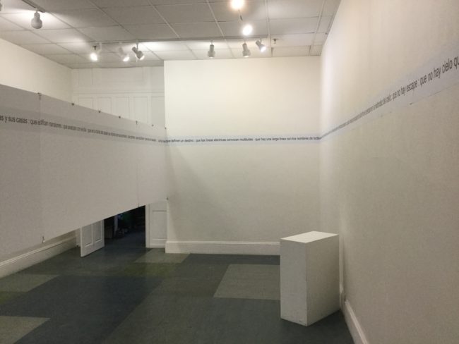 El poema Deadline (2011–2016) fue concebido como una línea horizontal continua cuya versión final está conformada por sesenta y siete frases. El poema fue exhibido como pieza visual en la galería Common Street Arts, en Waterville, Maine, durante el mes de abril de 2016, para conmemorar el mes nacional de la poesía que se celebra en los Estados Unidos. La curaduría corrió a cargo de Francisca Victoria Moraga con diseño de Kico Passalacqua. La apertura de la instalación incluyó un performance consistente en la ejecución de una pieza sonora para dos voces y violín diseñada para la ocasión por el autor. En ella participaron Anita Savo (cotraductora de la versión al inglés), Jennie Gubner en el violín y el propio Juan Manuel Portillo.